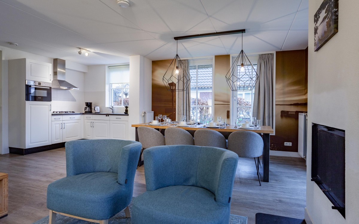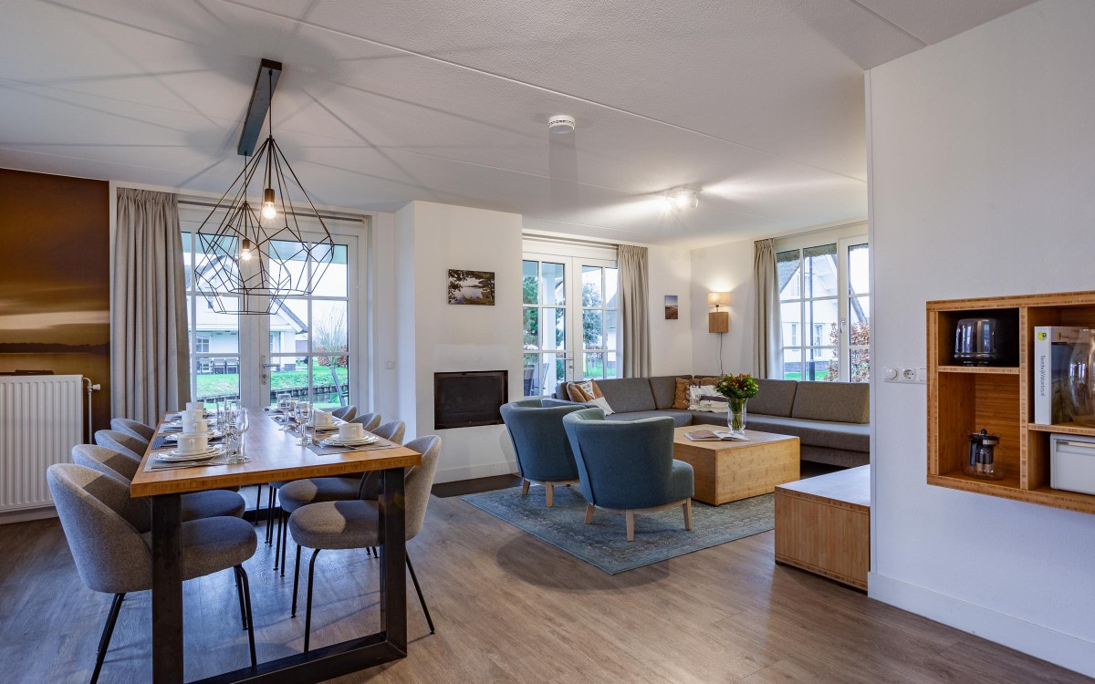 Diese Ferienvilla mit dem landestypischen Reetdach verfügt über einen geräumigen hellen Wohnbereich und Essbereich mit offener Küche. Bei Buchung können Sie ferner eine Präferenz (€ 35,00) angeben für: Gas-Kamin (gegen Aufpreis), Kamin, Whirlpool oder Sauna (gegen Aufpreis). Im Erdgeschoss befindet sich das Master-Schlafzimmer mit direktem Zugang zum Badezimmer mit Waschbecken und Dusche oder Wanne. Ebenfalls im Erdgeschoss befinden sich eine separate Gästetoilette und ein Abstellraum. Im Obergeschoss befinden sich 3 geräumige Schlafzimmer und ein zentral gelegenes Badezimmer mit Badewanne und Dusche, Waschbecken und Toilette. In jedem Schlafzimmer gibt es 2x Einzelbetten. Bei Ankunft sind Ihre Betten bereits frisch bezogen. Direkt vor der Ferienvilla befinden sich zwei Stellplätze.