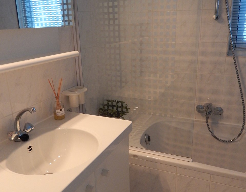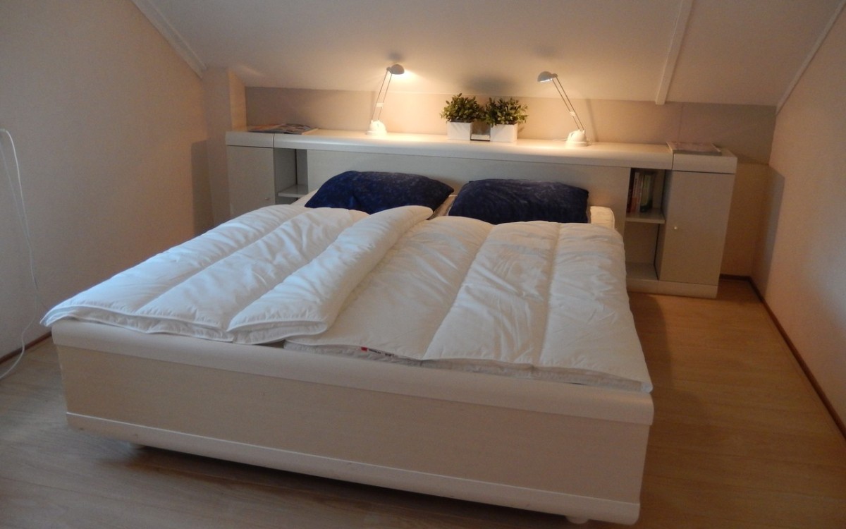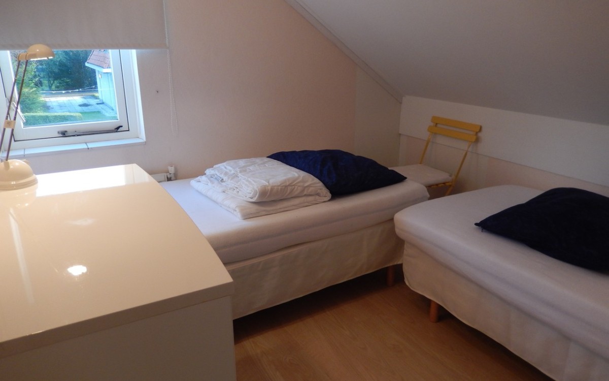 Im Erdgeschoß befindet sich ein Badezimmer mit Wanne, Toilette und Waschbecken. Im Obergeschoß ist ein grosses Schlafzimmer mit Doppelbed und ein kleine Schlafzimmeer mit zwei Einzelbetten.
