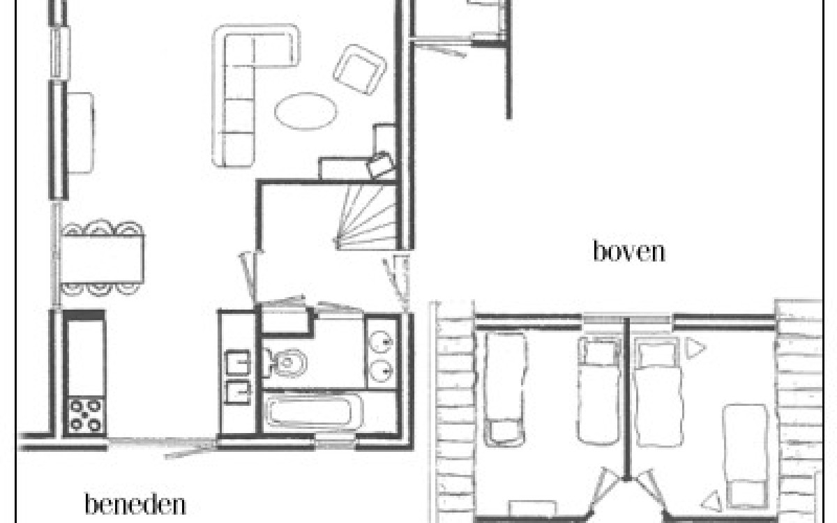Im Erdgeschoß befindet sich ein Badezimmer mit Wanne oder Dusche, Toilette und Waschbecken. Im Obergeschoß sind drei Schlafzimmeer mit jeweils zwei Einzelbetten mit Deckbetten und Kissen, die bei Ankunft bereits für Sie bezogen sind.