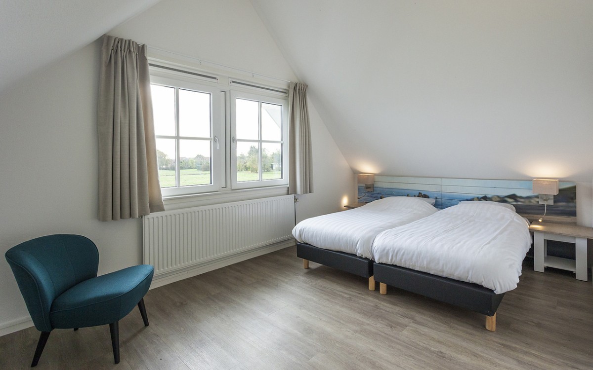 Freistehende luxuriöse Ferienvilla mit extra grossen Wohnzimmer. Das Haus hat eine freie Aussicht über den Feldern. Das sehr geräumige Wohnzimmer enthält eine Sitzecke, Essbereich und offener Küche mit Geschirrspüler. Im Erdgeschoss gibt es noch ein zweite Badezimme mit Dusche und Waschbecken. Waschmaschine und Trockner. Im Obergeschoss finden Sie 3 Schlafzimmer und zentral gelegenen Badzimmer mit Badewanne, separater Dusche, WC und Doppelwaschbecken. In jedem Schlafzimmer gibt es 2x Einzelbetten. Bei Ankunft sind Ihre Betten bereits frisch bezogen. Direkt vor der Ferienvilla befinden sich zwei Stellplätze.