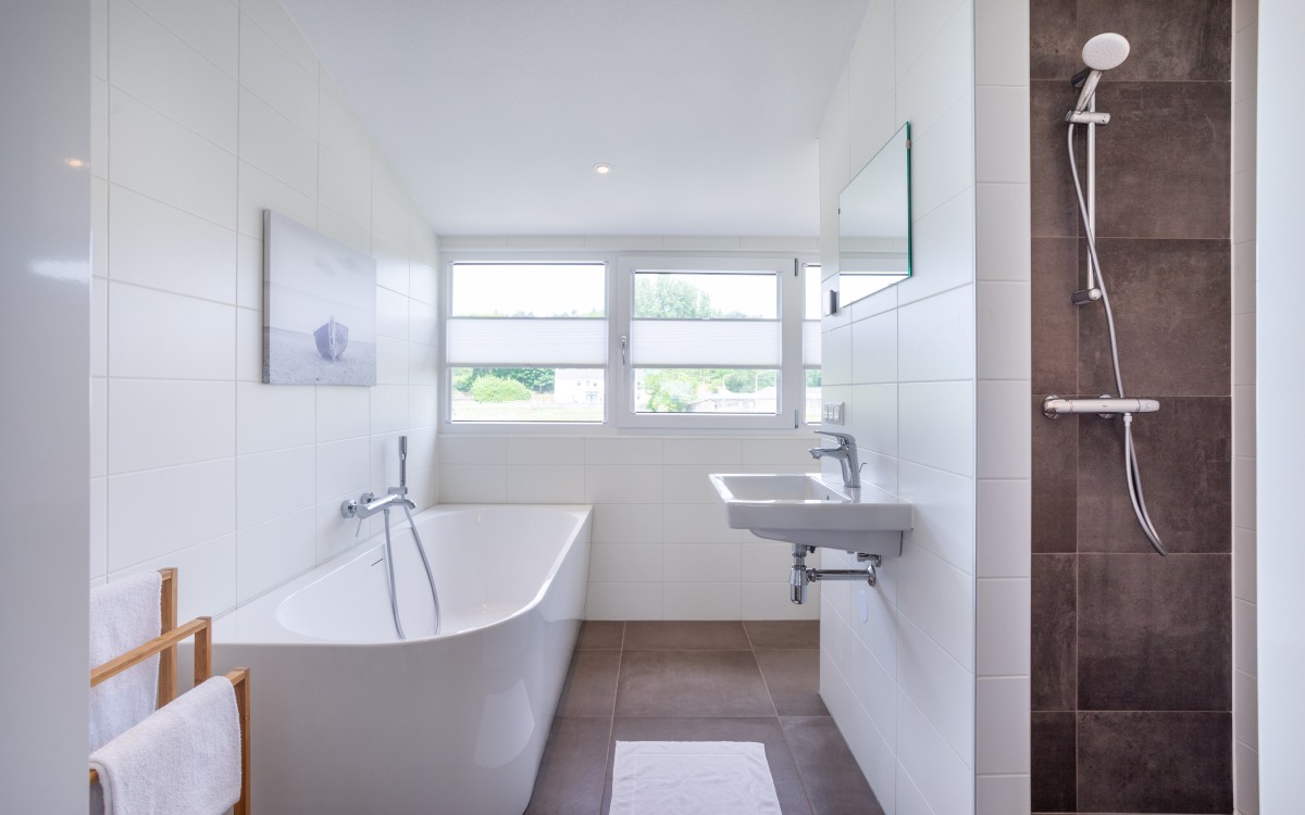 - 1 Badezimmer mit Badewanne, Dusche, Toilette und Waschbecken im ersten Stock