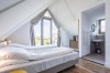 More wishes are not possible. Top class house with 4 "hotel rooms" in an 8 person house. The thatched house is a picture with a spacious veranda.The hall gives access to the storage room, toilet, stairs and spacious bright living room with spacious seating area overlooking the terrace. The wood stove creates extra atmosphere as well as the outdoor fireplace. The patio doors form a beautiful transition from the inside to the outside. An eight-person dining area and open kitchen with cooking island complete the living room. Adjacent to the living room is a bedroom with bathroom en-suite with in the shower a sun shower on the wall. On the floor with two large dormer windows are three bedrooms, each with their own private bathroom with shower/sun shower and toilet. Each bedroom has a TV.