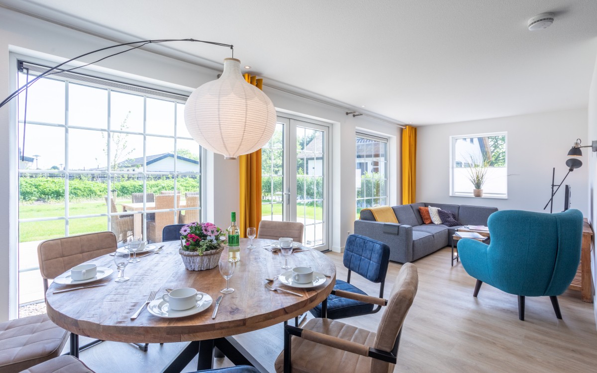 A luxurious spacious 8-person house where the central entrance gives access to the living room with spacious sitting area, dining area and open kitchen, the toilet and the storage room of the house. The ground floor also offers space for a bedroom with a private bathroom with shower and sink. On the first floor you will find two large bedrooms with a centrally located bathroom with a shower, bath, sink and toilet. Two bedrooms with 2 single beds and 1 bedroom with 4 beds, which are made for you on arrival. 3 parking spaces at the house.
