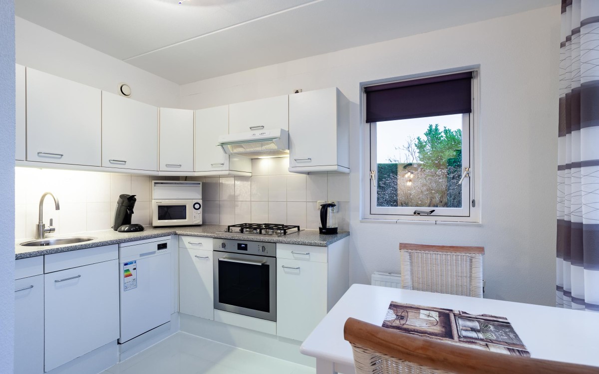 Standaard vakantiewoning met veel contact met 'buiten'. Op de begane grond een ruime woonkamer met flatscreen TV en DVD, openslaande deuren naar uw eigen terras. Ingerichte keuken met eethoek . Bij de entree een apart toilet en berging. Boven is de badkamer met bad, toilet en wastafel. 1 slaapkamer met 2x éénpersoonsbedden en 1 slaapkamer met 3x éénpersoonsbedden. Bij aankomst zijn de bedden voor u opgemaakt. Parkeergelegenheid bij de woning voor 2 auto's. WIFI is inbegrepen.