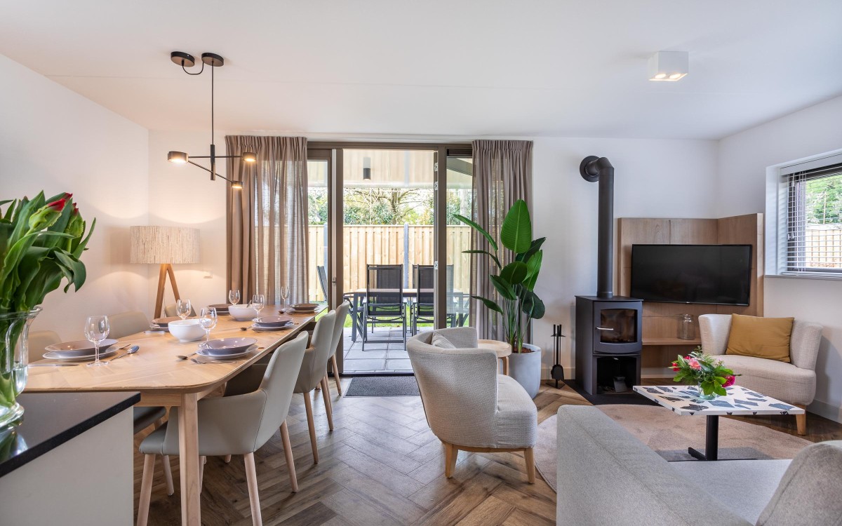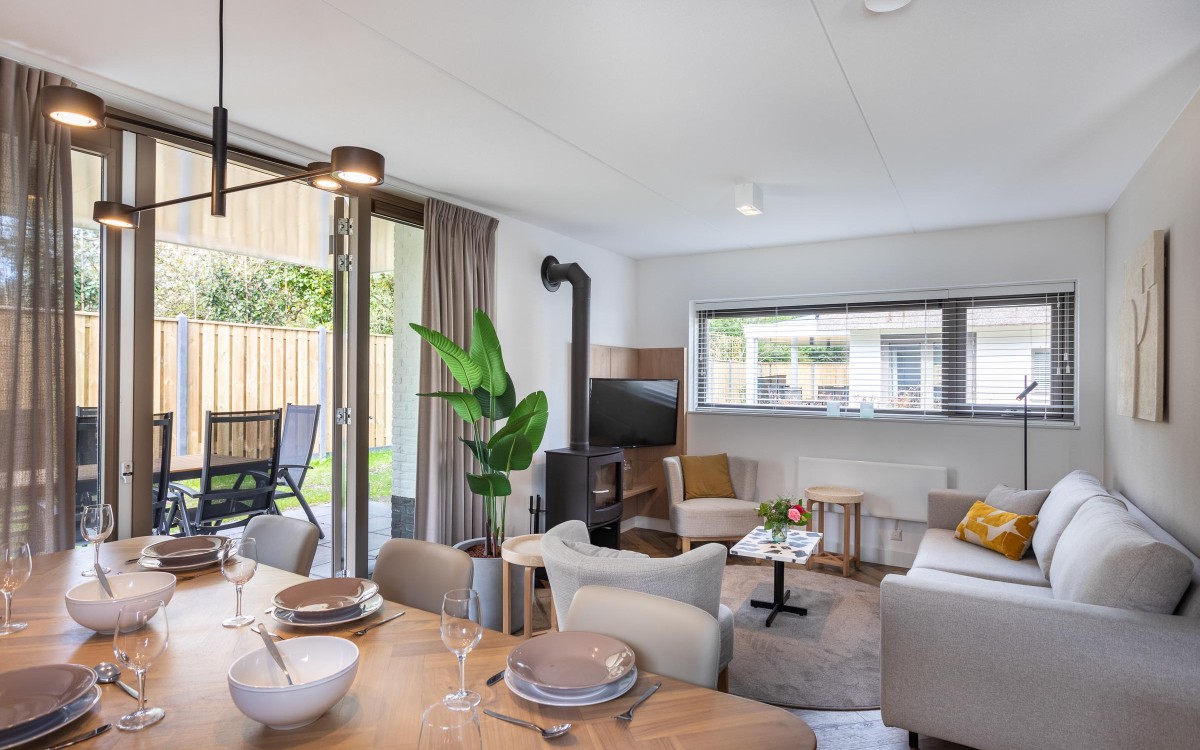 Deze woning is de topper van de Putters. De rietgedekte Putter Prestige heeft een veranda. Ontbijten in de opkomende zon of wat langer buiten zitten; via het door de tuindeuren bereikbare overdekte terras betrekt u "buiten" bij "binnen". De buitenhaard zorgt ervoor dat u heerlijk kunt ontspannen op de ultieme buitenplaats. De houtkachel geeft sfeer in de royale woonkamer. Via de hal met trap en toilet komt u in de indrukwekkende leefruimte met eethoek, kookeiland en zithoek. Slecht ter been of wat ouder; ook deze zespersoonswoning heeft een slaapkamer met badkamer met sunshower in de douche op de begane grond. Op een etage hoger vindt u de sauna. De slaapkamers zijn op hotelnivo met eigen sanitaire ruimte en sunshower in de douche en iedere slaapkamer is voorzien van een TV.
