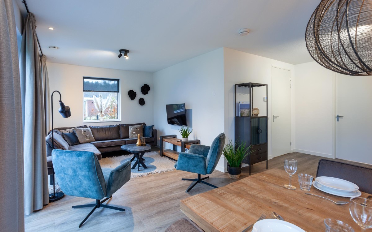Een luxe ruime 6 persoons woning waarbij de centrale entree toegang geeft tot de woonkamer met ruime zithoek, eethoek en openkeuken, het toilet en de berging van de woning. De begane grond biedt tevens ruimte aan een slaapkamer voorzien van een eigen badkamer met douche en wasbak. Op de verdieping vindt u twee grote slaapkamers met een centraal gesitueerde badkamer voorzien van een bad, douche, wastafel en toilet. In iedere slaapkamer staan 2x 1-persoonsbedden, die bij aankomst voor u zijn opgemaakt. 3 parkeerplaatsen bij de woning.