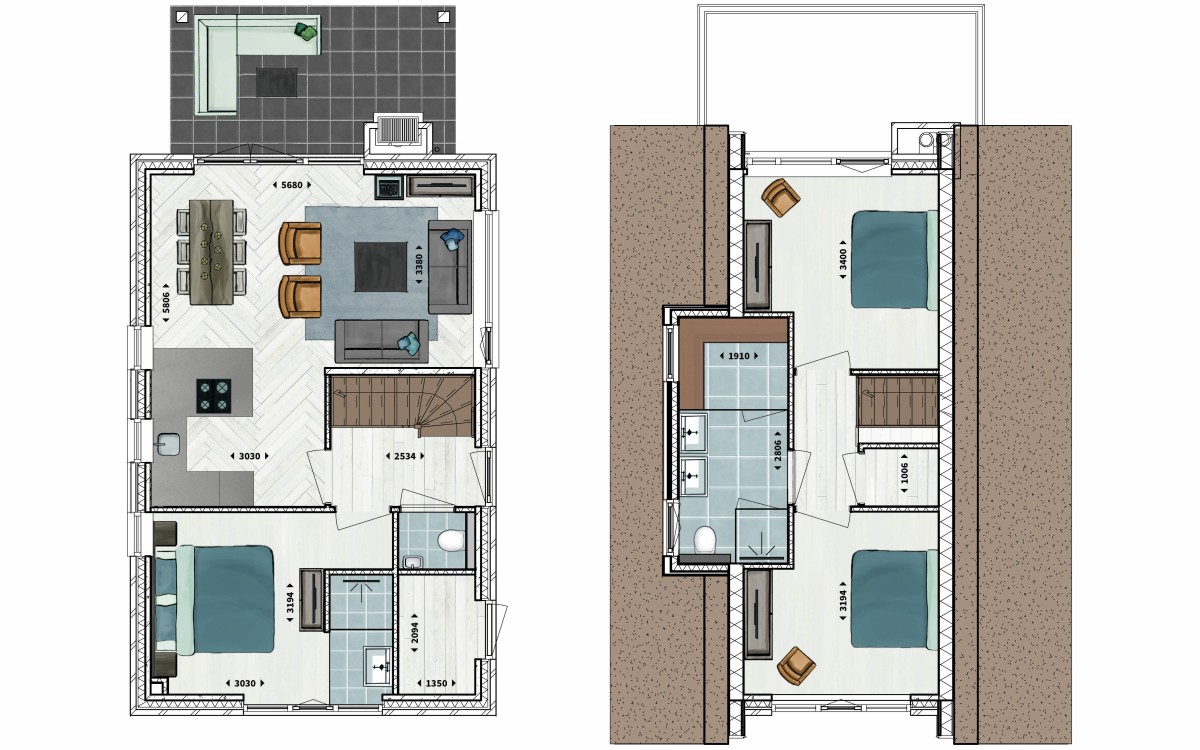 - 2 slaapkamers verdieping
